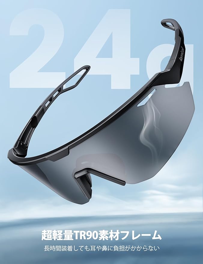 【超軽量26gで疲れ知らず】スポーツサングラスのフレームはTR90素材を使用、スポーツサングラスはたった26gの超軽量設計。マラソンやトレイルランで長時間装着しても耳や鼻に負担がかからず、まるで付けているのを忘れるような驚きの快適さです。また、TR90は弾力性、安全性、耐衝撃性に非常に優れた素材です。アウトドアでも壊れにくい。収納袋付きで、持ち運びがしやすい