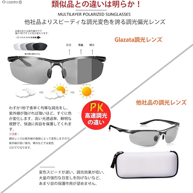 [Glazata] 偏光スポーツサングラス 偏光グラス ・超軽量メタル UV400 紫外線カット ドライブ/野球/自転車/夜釣り/ランニング/ゴルフ/運転