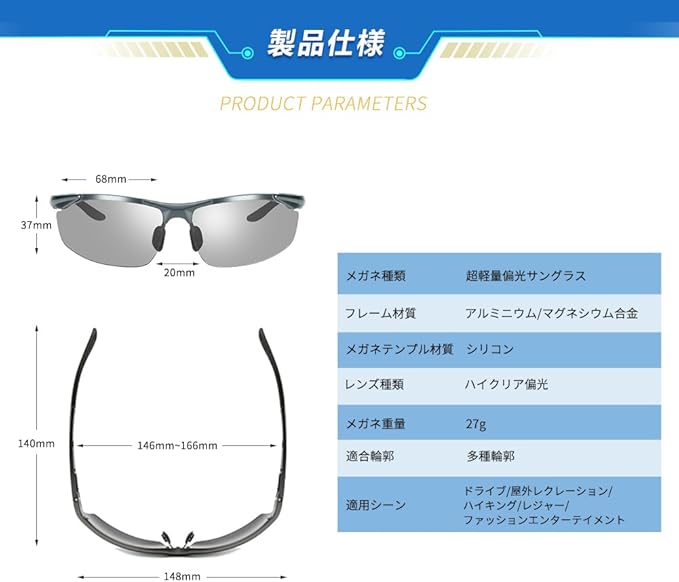 ✅➤【視覚疲労を最大限抑え】紫外線量によりレンズの色濃度が変化し、曇っている場合でも紫外線が強いと、レンズの色は濃くなります。 眼の疲れを防いだり、目元のシミやしわをつきにくくしてくれます。あらゆる気象条件に対応でき、夜間もそのままかけていることが可能です。