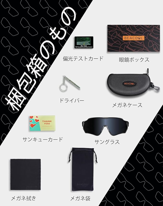 EXQUISITEパッケージ: ハードで洗練された保護カバー、清潔な布と袋、サングラスドライバーをオプションするBEACOOLサングラスとスポーツやアウトドア愛好家への完璧なオプションです。フレームとレンズは壊れにくく、リスクなく購入できます。何か問題が発生した場合は、迷わずBEACOOLのベンダーに連絡して、問題を解決して、満足するまで解決してください。BEACOOLはすべての製品にアフターサービスを提供している