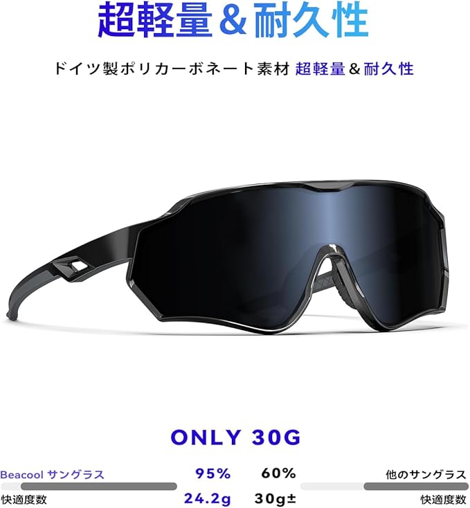 [BEACOOL] スポーツサングラス 超軽量 TR90 TAC 偏光レンズ 野球 自転車 釣り ランニング 登山 ゴルフ ドライブ バイク テニス スキー 大型フレーム設計 メンズ レディース UV400 紫外線防止 ユニセックス サングラス 安全 清晰
