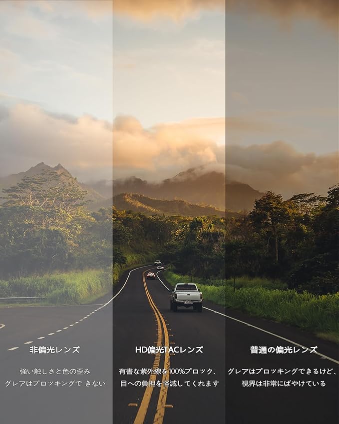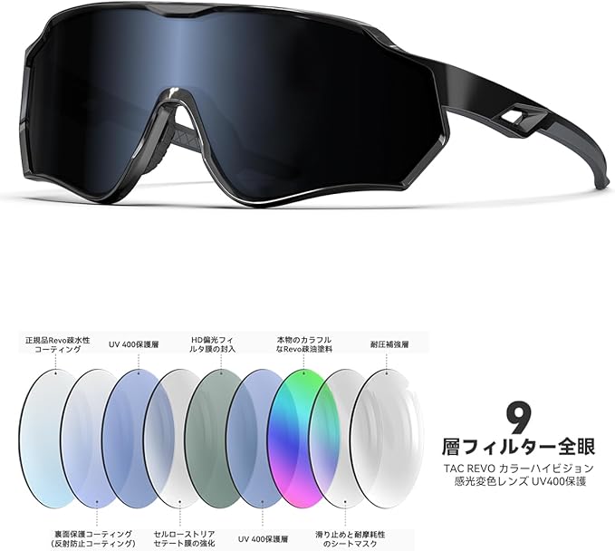 TAC材料: すべてのレンズは高品質破砕防止TAC材料で作られており、十分に耐久性があり、長期的に着用することができます。軽量なTR90フレームの設計は、ランニング、野球、運転、釣り、登山、オートバイや自転車、レース、スキー、トレッキング、アウトドアなどに最適で、剃りにくく、壊れにくい。色彩豊かなレンズはファッションとスポーツを組み合わせ、男性と女性が着用するのに適しており