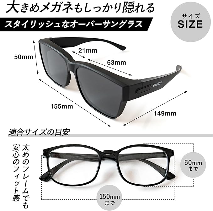 【眼鏡の上から重ねてかけるサングラス】メガネの上からかけることができるオーバーサングラス