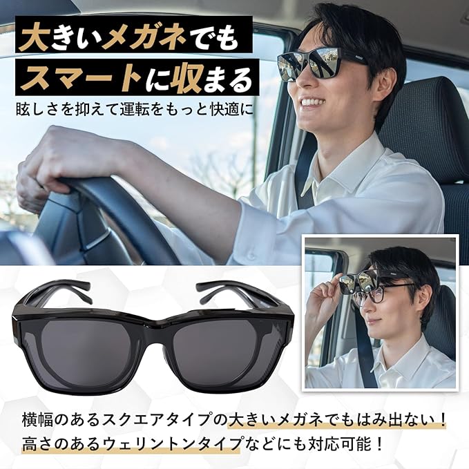 [ADDIST] 大きめメガネもすっきり収まる オーバーサングラス 眼鏡の上からかける サングラス 偏光 運転用 メンズ 超軽量 オーバーグラス
