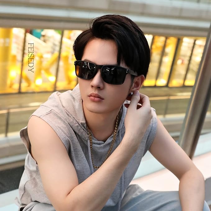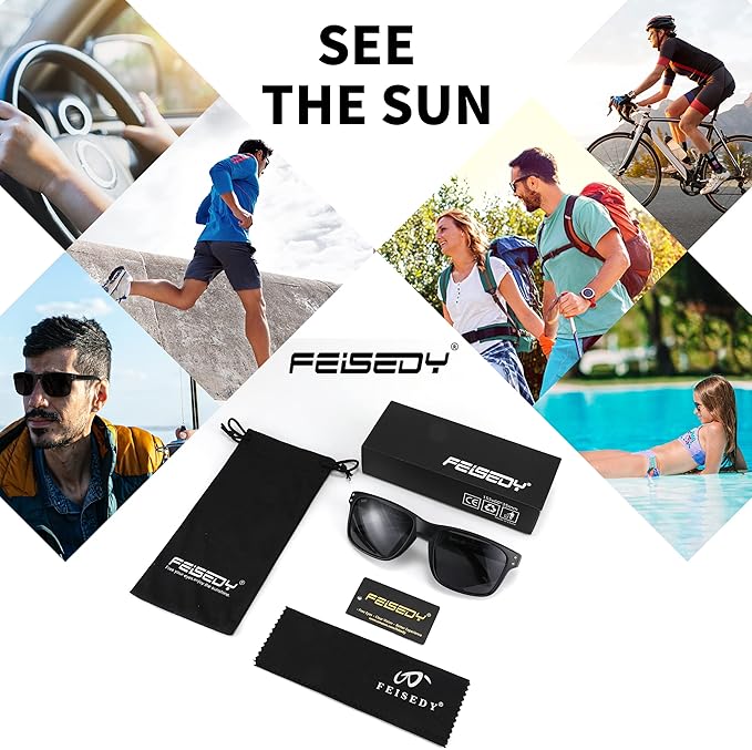 [FEISEDY] スポーツサングラス メンズ 偏光 大きい 人気 サングラス ウェリントンフレーム 100%uvカット 釣り 運転 ドライブ サングラス ミラーレンズ B2234