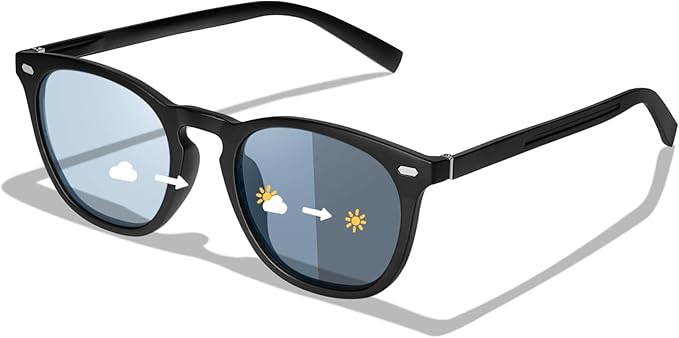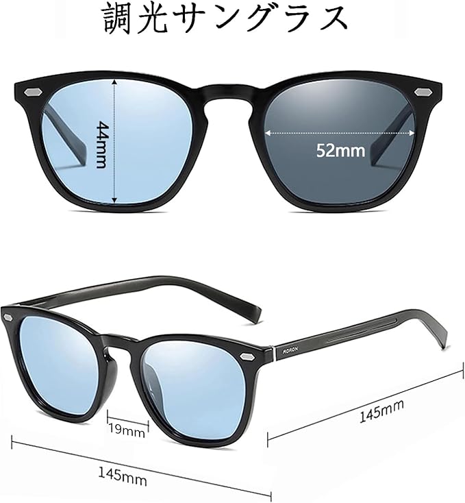 【調光機能レンズ】調光レンズが紫外線の強弱に応じて変化 レンズの色濃度を自動調整, 最適な視界を提供してくれます。ご注意:社内、室内、曇り空など紫外線の弱いでは変色調光が弱くなることを予めご了承ください。
