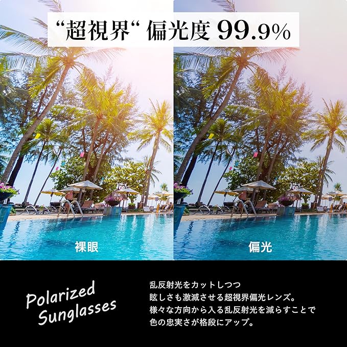 ️UV400対応で紫外線を99.9%以上カット。さらに網膜に負担をかけるブルーライトも85%以上カットできる偏光レンズを採用。屋外の強い光から目を守るサングラスとして、また眼鏡の上から使えるオーバーサングラスとしても優秀。特にドライブやスポーツ時など、反射光による目の疲れを軽減。瞳の健康を守る多機能偏光サングラスで、日常使いにもおすすめ。