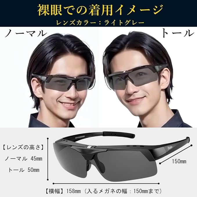 ️大型サイズのオーバーサングラスで、眼鏡の上からでも快適に装着可能。裸眼でも大きめのサングラスとして使え、軽量の偏光レンズが99.9%の乱反射をカット。偏光+UV+ブルーライトカット機能付きの多機能サングラスで、普段使いからアウトドアまで幅広く活躍する眼鏡の上から使える万能な偏光対応のオーバーサングラス。
