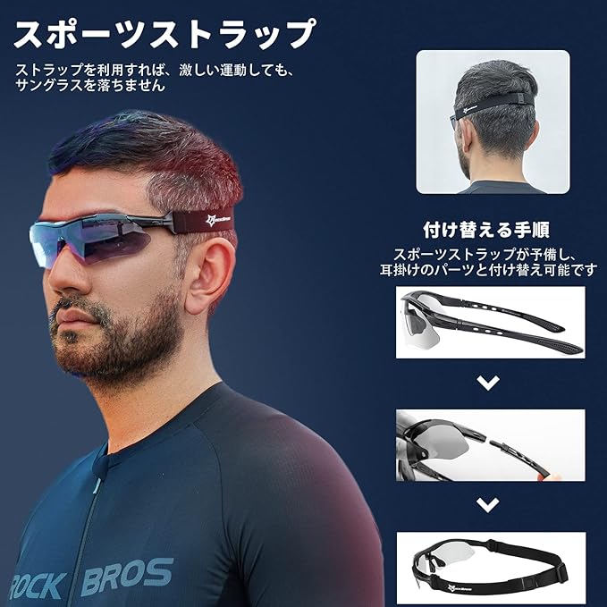 ROCKBROS(ロックブロス)調光サングラス 自転車 サングラス スポーツ 変色レンズ 紫外線カット 防風 軽量 耐衝撃 登山 野球 昼夜兼用 メガネ メンズ レディース