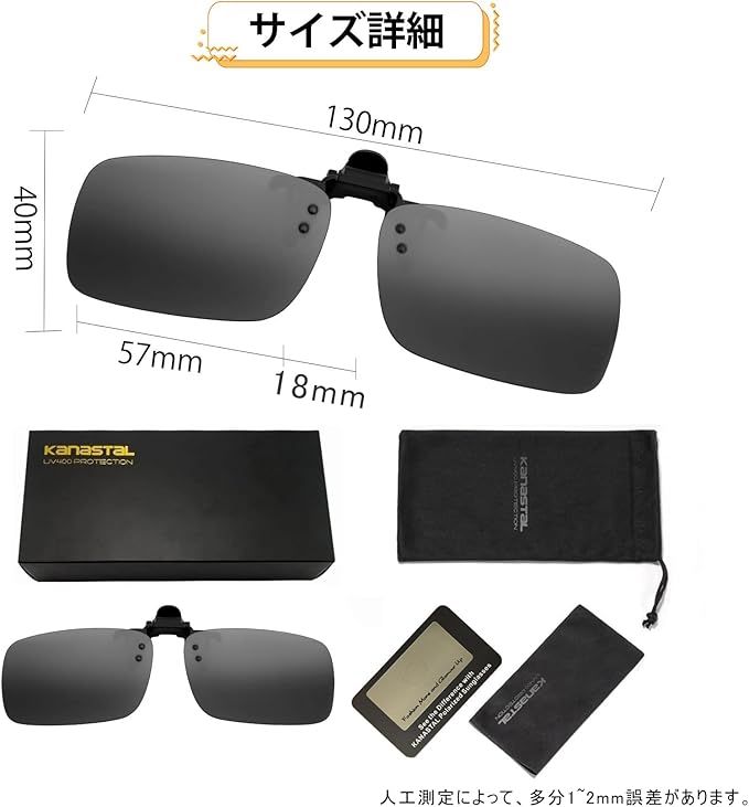 [KANASTAL] サングラス クリップオン 前掛けクリップ 跳ね上げ式 眼鏡の上から メガネにつける UVカット超軽量 偏光 運転用 メンズ レディース スポーツ