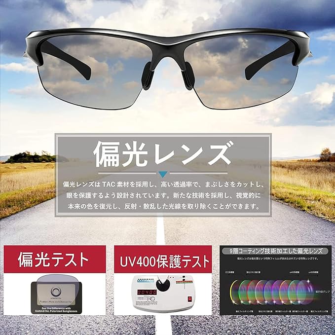 [KANASTAL] サングラス メンズ スポーツ 超弾性耳掛 フレーム 偏光 uv400 紫外線カット 人気 超軽量 抗衝撃 野球 登山 釣り 自転車 sunglasses for men women