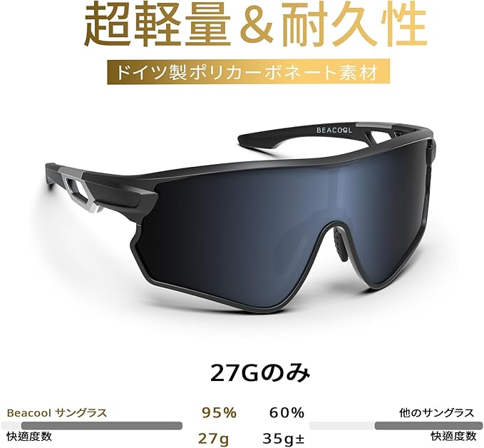 [BEACOOL] スポーツサングラス 偏光レンズ ランニング 野球 自転車 釣り 登山 ゴルフ ドライブ バイク テニス スキー 大型フレーム設計 メンズ レディース 超軽量 TR90 TAC UV400 紫外線防止 ユニセックス サングラス 安全 清晰