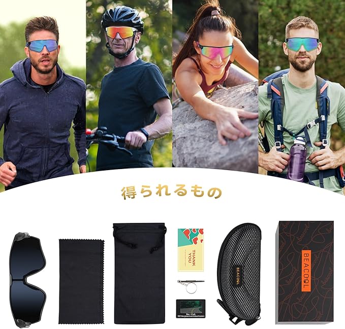 EXQUISITEパッケージ: ハードで洗練された保護カバー、清潔な布と袋、サングラスドライバーをオプションするBEACOOLサングラスとスポーツやアウトドア愛好家への完璧なオプションです。フレームとレンズは壊れにくく、リスクなく購入できます。何か問題が発生した場合は、迷わずBEACOOLのベンダーに連絡して、問題を解決して、満足するまで解決してください。BEACOOLはすべての製品にアフターサービスを提供している