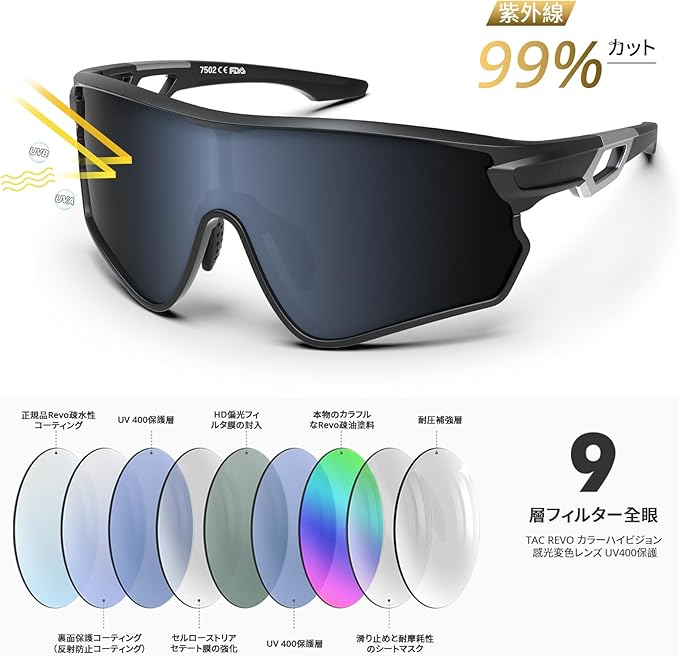 高品質TAC材料: すべての偏光レンズは高品質破砕防止TAC材料で作られており、十分に耐久性があり、長期的に着用することができます。軽量なTR90フレームの設計は、ランニング、野球、運転、釣り、登山、オートバイや自転車、レース、スキー、トレッキング、アウトドアなどに最適で、剃りにくく、壊れにくい。色彩豊かなレンズはファッションとスポーツを組み合わせ、男性と女性が着用するのに適しており、日本人のために設計されています