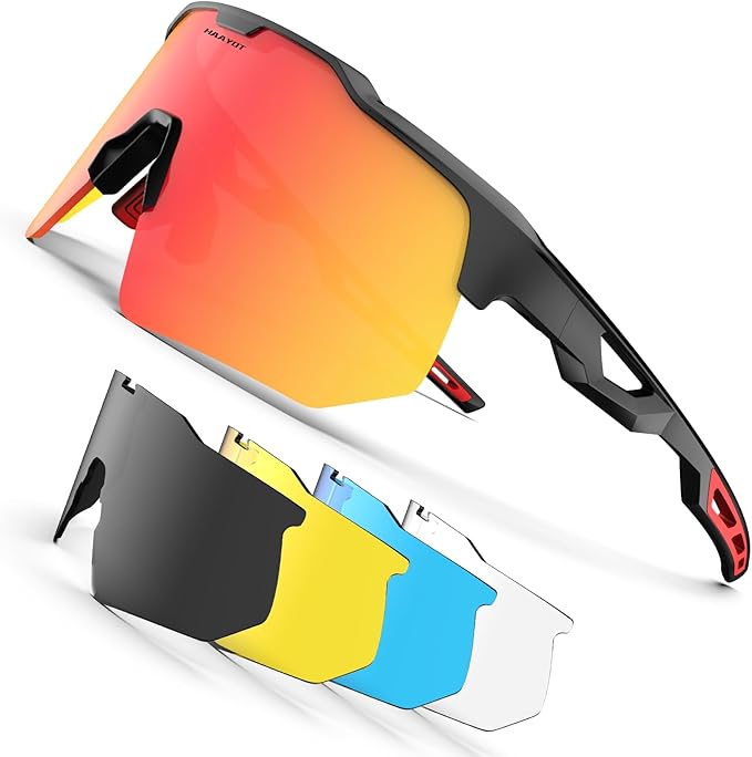 [HAAYOT] 偏光スポーツサングラス メンズ レディース ユース 野球 サイクリング ランニング ソフトボール サイクリンググラス 5レンズ付き