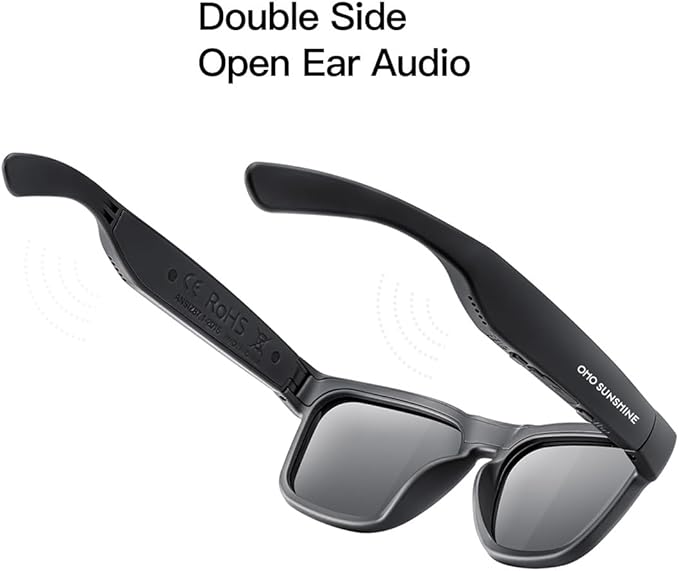 [OhO sunshine] スマートメガネ 偏光サングラス Bluetoothスピーカー付き 運動/アウトドア用 UV保護 音声制御 ユニセックス (グレーレンズ) Bluetooth 5.2 and IP44 Waterproof