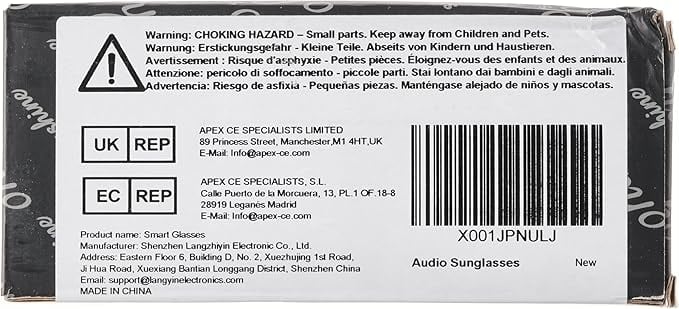 音量アップ / ダウンボタン:オーディオメガネには音量アップ / ダウンボタンに加え、早送りおよび巻戻し機能があり、バッテリーの再生持続時間は最長10時間となっています。