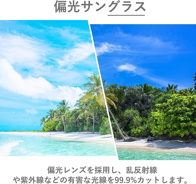 【TAC偏光レンズで実現する快適な視界と疲労軽減】特殊なTAC偏光技術により、視界を邪魔する反射光を効率的に除去。長時間の使用でも視界はクリアで、目の疲労感を抑えます。ドライブやスポーツなどでの高パフォーマンスを発揮し、日常的な目の健康をサポートします。デザイン性も高く、毎日の外出がもっと楽しく、そして目に優しいものに変わります。