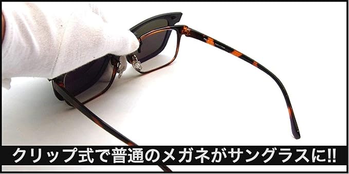 【眼鏡の上から掛けられる】 おしゃれなウェリントンタイプのクリップ式サングラス