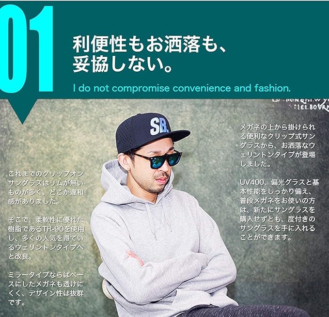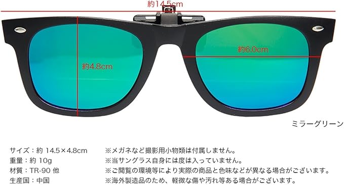 TR-90 ウェリントン 型 クリップ 式 サングラス