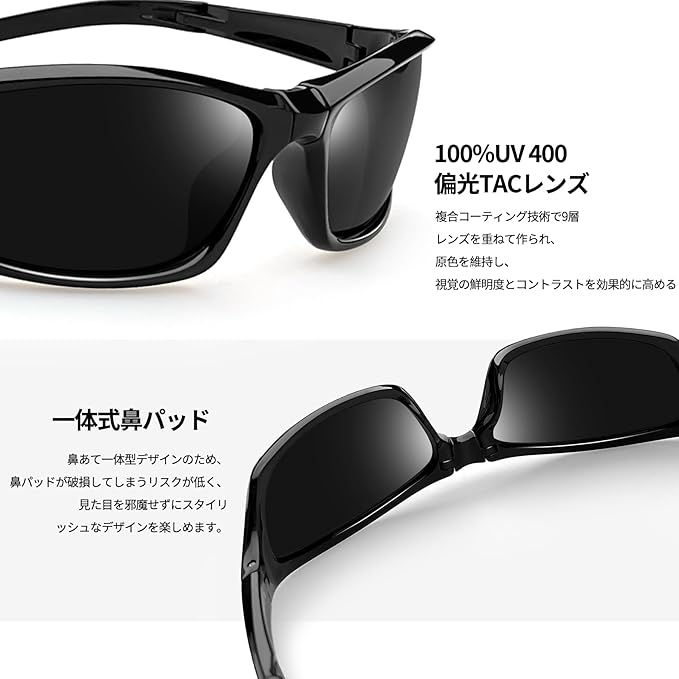 【快適な装着】メンズ スポーツサングラス一体型の鼻当てデザインで、鼻部の曲線にフィットし、軽量のフレームと相まって、長時間装着しても圧迫感が全くなく、快適な装着体験をお楽しみいただけます