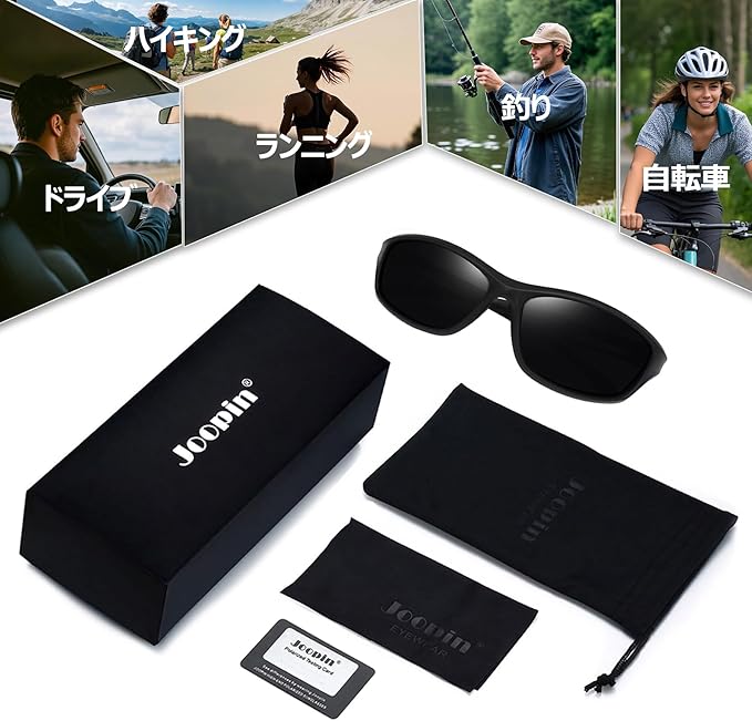 【パッケージ内容】セット内容:JOOPINサングラス本体 1、布製バッグ 1、メガネ拭き 1、偏光テストカード 1が付属されています。メンズ 偏光サングラスは、ファッションな外出をサポートし、強い太陽光を恐れません