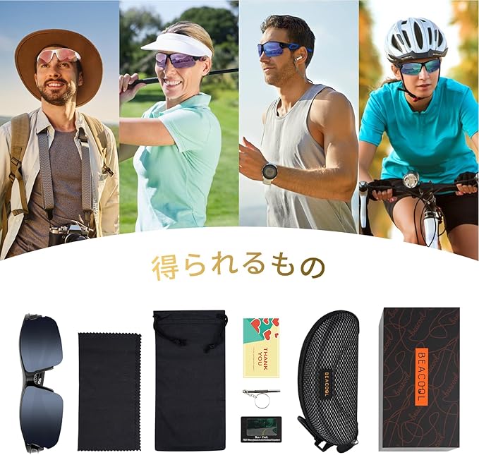 [BEACOOL] スポーツサングラス 偏光レンズ 野球 自転車 釣り ランニング 登山 ゴルフ ドライブ バイク テニス スキー メンズ レディース 超軽量 TR90 TAC UV400 紫外線防止 ユニセックス サングラス 安全 清晰