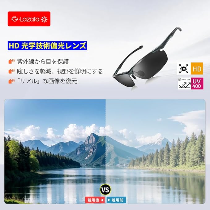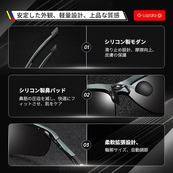 [Glazata] 偏光スポーツサングラス 偏光グラス 昼夜兼用・超軽量メタル UV400 紫外線カット ドライブ/野球/自転車/夜釣り/ランニング/ゴルフ/運転