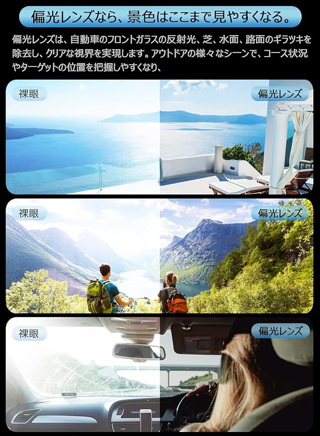 【サングラス 偏光】すべてのレンズはUV 400効果を有し、100%有害な紫外線を遮断することができ、光学解像度を提供し、目をダメージから保護することができます。天候や様々なシーンに合わせてレンズを入れ替え、快適な視界を実現しています。