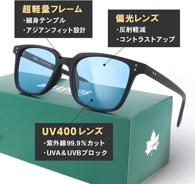 [藤田光学] LOGOS サングラス メンズ 偏光 おしゃれ 運転 ドライブ 自転車 釣り スポーツ 眩しさ軽減 UVカット 紫外線 へんこう さんぐらす 超軽量 ケース付き