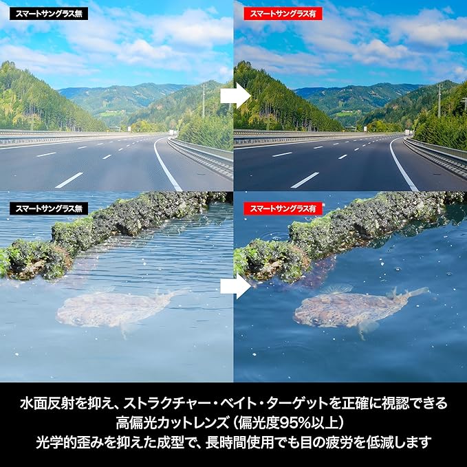 水面反射を抑制し、ストラクチャー・ベイト・ターゲットを正確に視認。