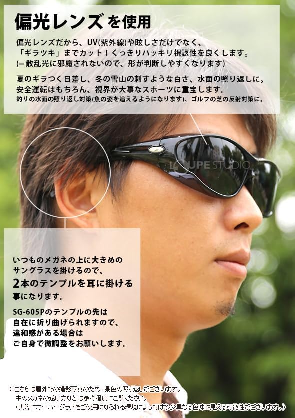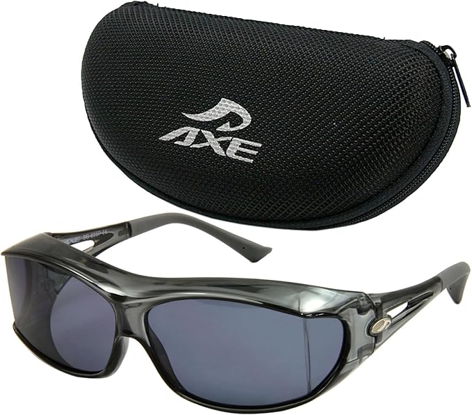 [アックス] サングラス 偏光レンズ オーバーグラス メガネの上から 日本製 オーバーサングラス ロゴケース セット 180度以上視界確保 大型メガネ着用可能 紫外線カット UVカット 釣り ゴルフ 605PSET