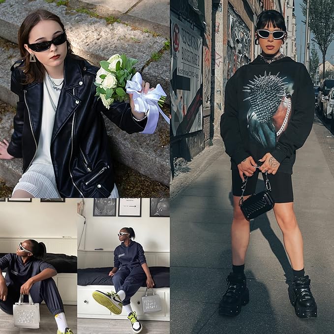 [POINT]- Y2Kムードでユニークなサングラス-かっこいいサングラスシェイプ- 安定感のあるボディ感レトロなスクエアフレームがY2Kファッションにマッチし、様々な顔型に合わせることができます。 さまざまなレンズカラーで、毎日のファッションのさまざまな装いに合わせることができます。