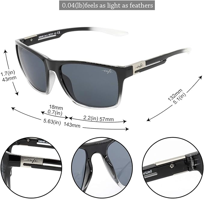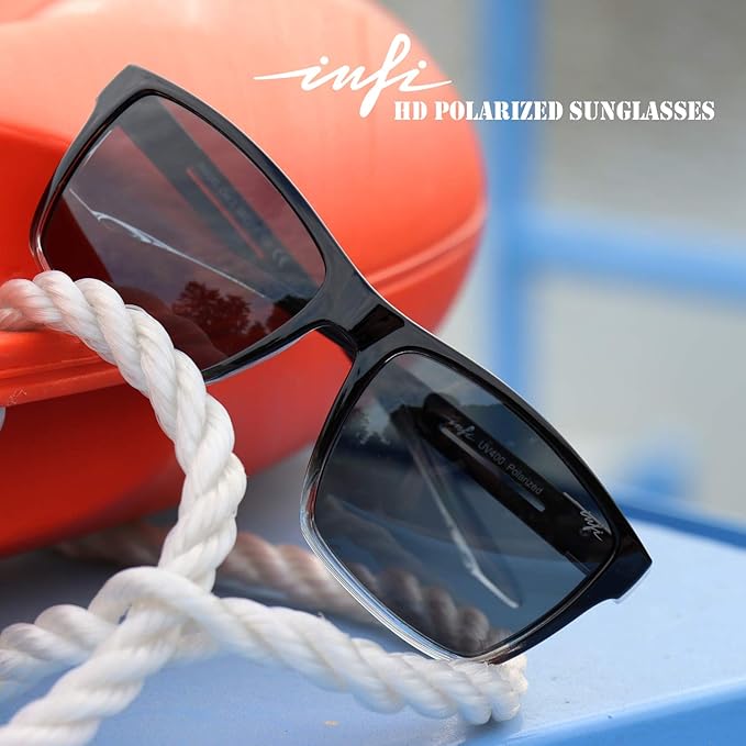 [INFI] 偏光 サングラス 釣り 運転 ドライブ スポーツ ランニング UVカット メンズ レディース グラディエント ブラックフレーム スモークレンズ ブルーミラー デザイナーズモデル