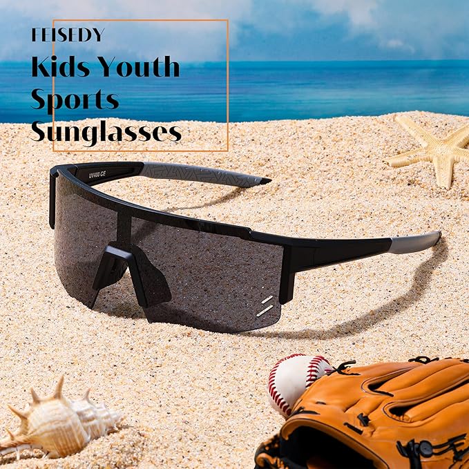 Feisedy キッズ スポーツ サングラス 子供用 UV400 超軽量 サングラス ゴルフ ジョギング 野球 バス 釣り 登山 自転車 サイクリング 紫外線カット B0048