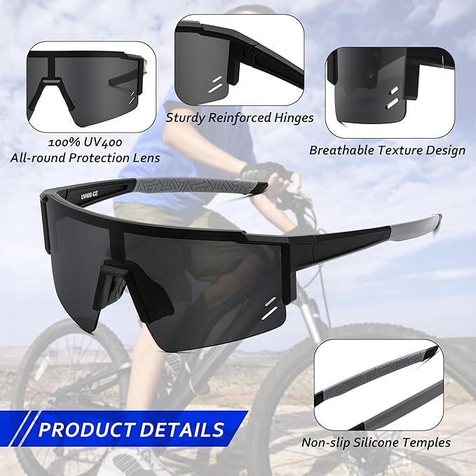 【スタイリッシュで実用的なデザイン】豊富なレンズカラーがファッションとスポーツを融合させ、ティーンエイジャーに適しています。サラウンド保護メガネは、より広い視野をもたらすだけでなく、目をよりよくカバーし、ほこり、風などから目をより安全に保護するために、目により良くフィットすることができます。