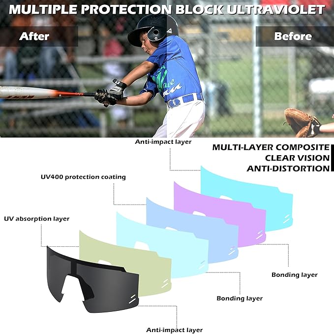 【様々なシーンに大活躍】自転車、ランニング、ドライブ、ハイキング、野球など、アウトドアスポーツに最適で、子どもの目を保護します。