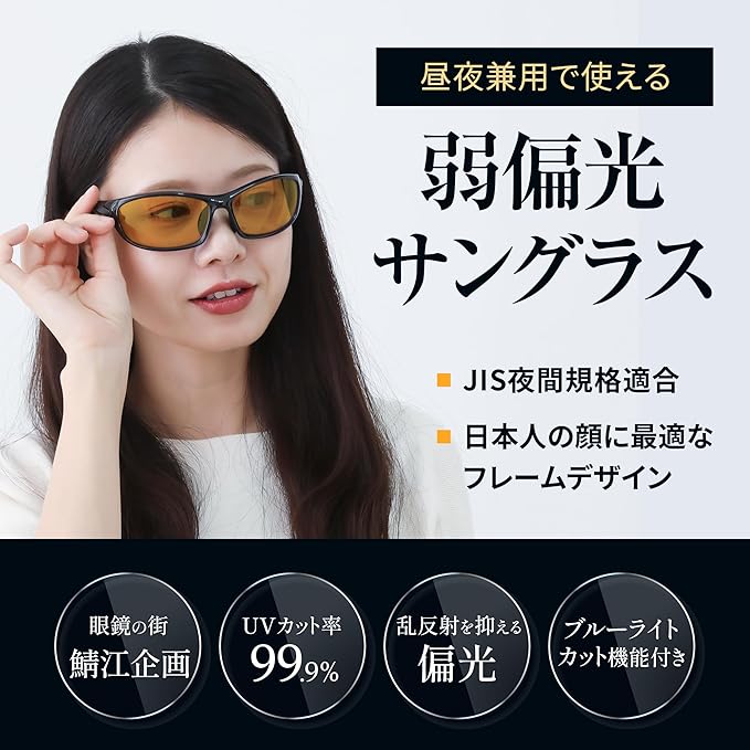 [冒険王] 夜間運転用サングラス スポーツサングラス 【鯖江企画/夜用/弱偏光】 朝夕 マズメ 夜釣り