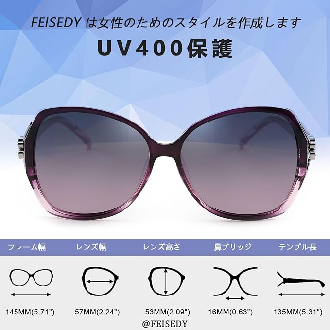 [FEISEDY] 偏光サングラス レディース UV400 紫外線対策 楕円型 だ円 キャッツアイ 軽量 大きめ ビッグフレーム お洒落 スポーツ ショッピング 運転用 B1085