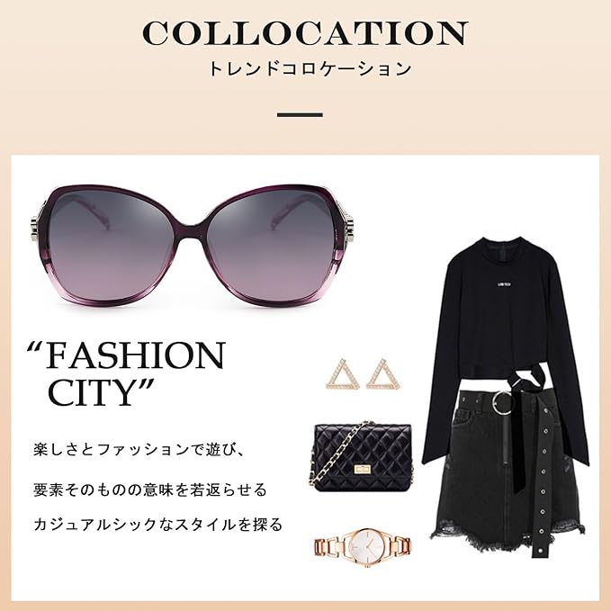 【様々なシーンで活躍】ブラックレンズはミステリアスでクールな印象を与えて、ファッションを楽しめながら目を紫外線から守り、ファッションやコーディネートの一環としても重宝するアイテムです。普段使いをもちろん、ウォーキング、ハイキング、スポーツ 、運転、旅行、 バイク、登山、釣り、スキーなど様々なシーンに大活躍してくれます。