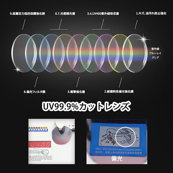 【UV400紫外線防止】UV400偏光サングラスは太陽光の中のすべてのUVAとUVB放射を完全に遮断できます。メガネの上からこのサングラスをかけて、車のドライブやバイクの運転時に、釣りや登山などのスポーツ アウトドアシーンで、UV400保護は我々の目を紫外線から守ります。