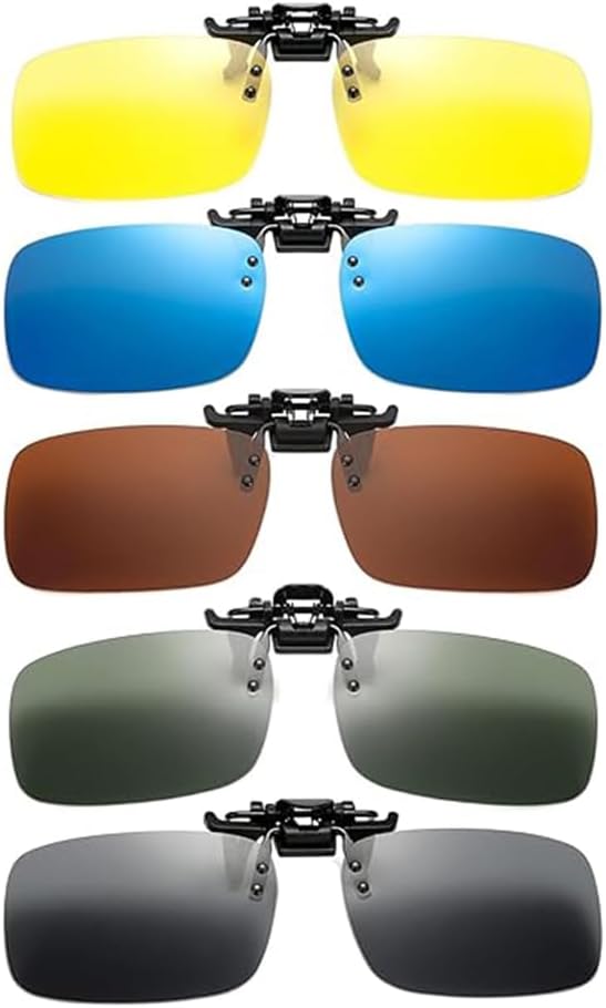 【商品仕様】ブラック、ダークグリーン、ブラウン、イエロー、ブルーの5つの豊かなトーンがセットになっており、どんなスタイルにも合わせやすいです。その日の気分やシーンに合わせてカラーをお選びいただけます。 【目を保護する】クリップオンサングラスは、反射光や散乱光によるまぶしさを軽減し、UV400偏光レンズを使用しているため、UVA、UVB放射、有害な紫外線の99.6%を遮断し、目の疲れを軽減します。サングラスは視界をクリアにし、目をリラックスさせます。日常生活やドライブ、釣り、スポーツなどのアウトドア活動に最適です。 【クリップオンデザイン】ワンクリックでメガネに装着でき、フリップオン(クリップオン)なので、トンネルなどの暗い場所に入るときにも外す必要がありません。軽量で耐久性に優れた素材を使用しています。長時間着用しても顔に過度の負担がかかりません。 【快適な装着感】偏光レンズはより強く、より耐久性があり、より軽量です。クリックするだけで既存のメガネに取り付けられるクリップオン偏光サングラス。使用しないときはレンズを上に折り畳んでおけます。このサングラスはアジア人向けにデザインされており、超軽量なので、長時間着用しても耳が痛くなりません。 【様々なシーンに最適】サングラスは、紫外線によるダメージから目を守り、眩しさによる疲労を防ぐために必需品です。ショッピング、旅行、運転、ランニング、ハイキング、ウォーキング、釣り、サイクリング、ゴルフ、スキー、その他の健康的なアクティビティに適しています。