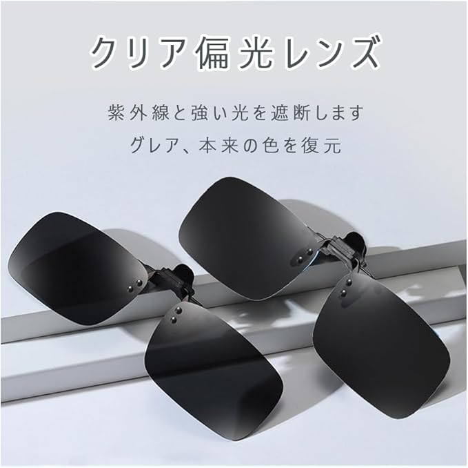【目を保護する】クリップオンサングラスは、反射光や散乱光によるまぶしさを軽減し、UV400偏光レンズを使用しているため、UVA、UVB放射、有害な紫外線の99.6%を遮断し、目の疲れを軽減します。サングラスは視界をクリアにし、目をリラックスさせます。日常生活やドライブ、釣り、スポーツなどのアウトドア活動に最適です。