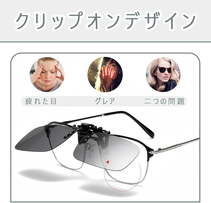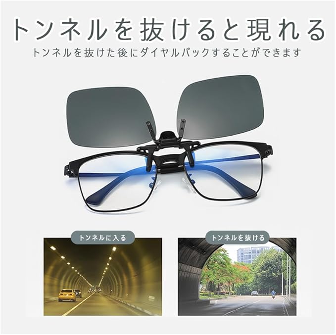 【クリップオンデザイン】ワンクリックでメガネに装着でき、フリップオン(クリップオン)なので、トンネルなどの暗い場所に入るときにも外す必要がありません。軽量で耐久性に優れた素材を使用しています。長時間着用しても顔に過度の負担がかかりません。