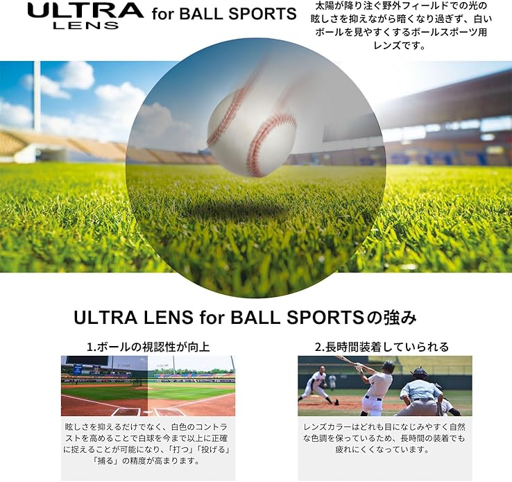 白いボールの視認性をあげるULTRAストレートスモークレンズを採用。紫外線は99.9%以上カット