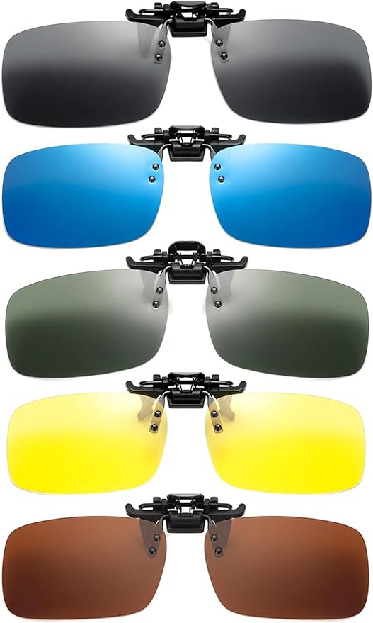 [Renjzle] クリップオン 偏光サングラス 5色セット 跳ね上げ式 紫外線カット 偏光レンズ UV 保護 超軽量 ドライブ 自転車 バイク 釣り 前掛け 夜用