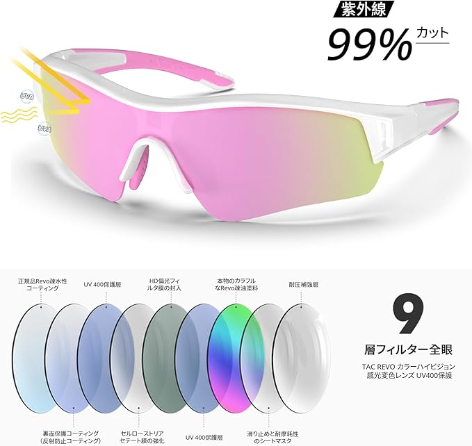 高品質TAC材料: すべてのレンズは高品質破砕防止TAC材料で作られており、十分に耐久性があり、長期的に着用することができます。BEACOOLスポーツ サングラスは耐衝撃性、耐傷性、耐久性に優れた壊れにくいTR90フレームを採用しており、日本人のために設計されています。軽量なリムレスジャケットフレームの設計は、ランニング、自転車、登山、野球、オートバイや運転、釣り、レース、スキー、トレッキング、アウトドアなどに最適です。色彩豊かなレンズはファッションとスポーツを組み合わせ、男性と女性が着用するのに適して、日本人のために設計されています