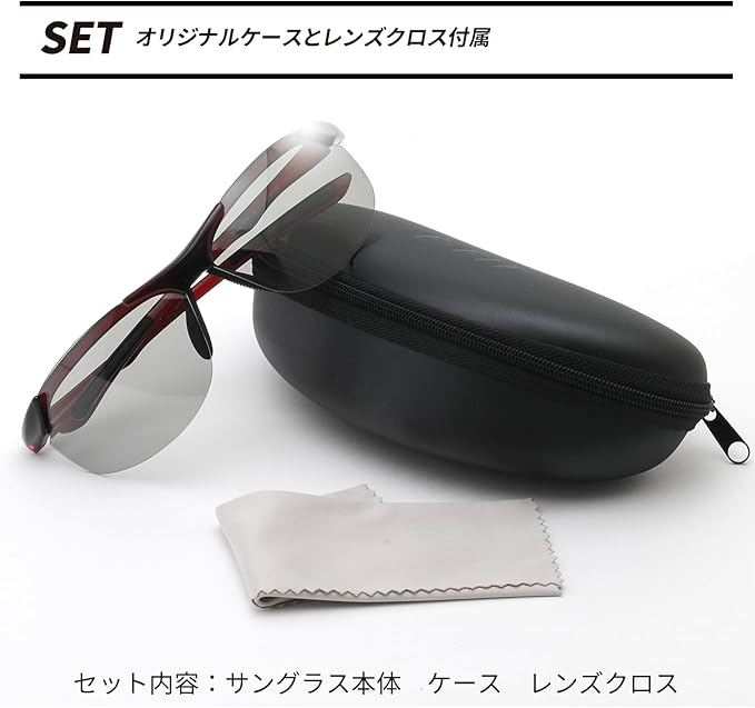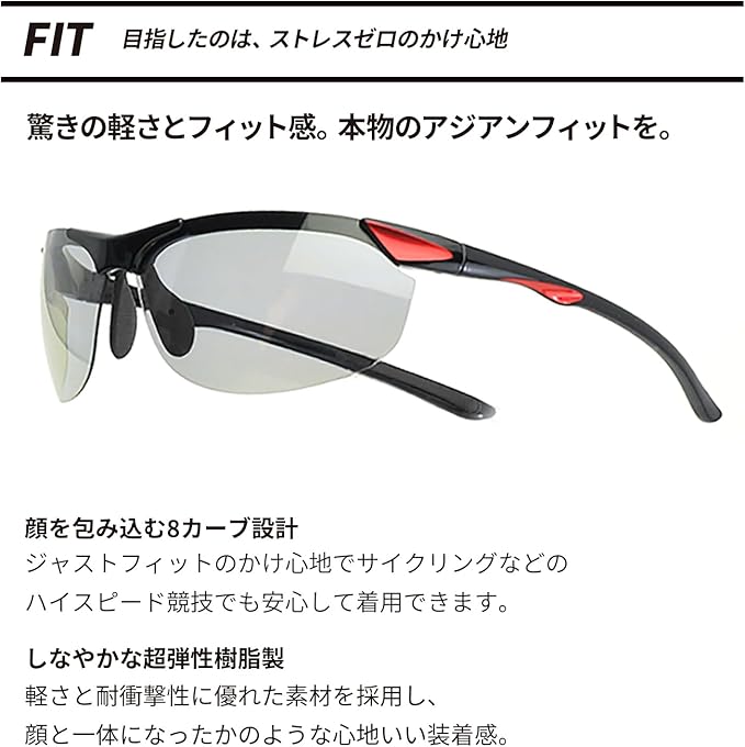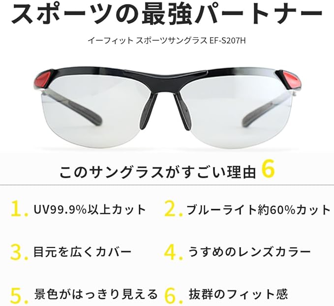 [E-FIT] スポーツサングラス 超軽量モデル アジアンフィット 紫外線カット UV400カット ブルーライトカット ケースセット EF-S207