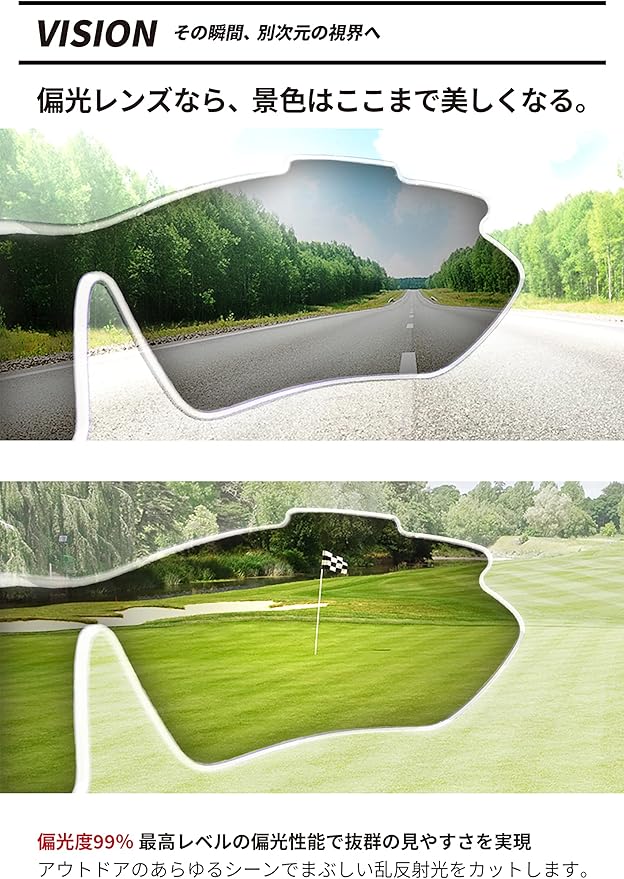 UV-A・UV-B・UV-C・UV400まですべての紫外線を99%カット。目と肌を守ります。有害な紫外線から目と目の周りの肌を守ります。