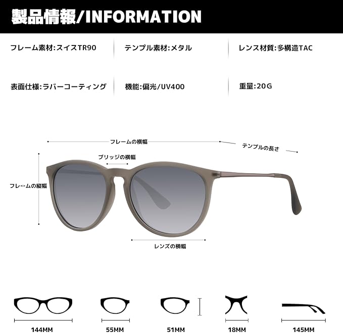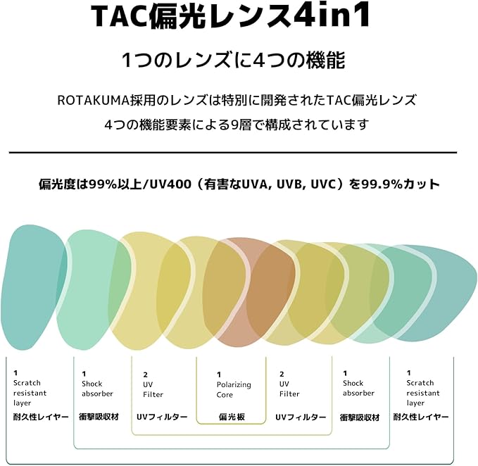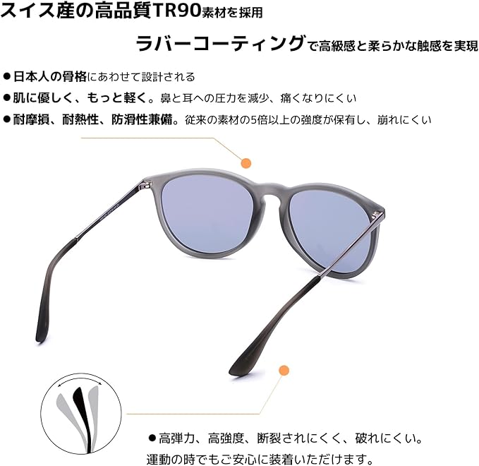 【素材構成】 フロント:超軽量TR90 レンズ:高品質プラスチック/偏光/UVカット率99%